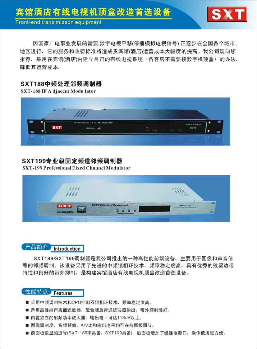 1 | 专业级邻频调制器 | SXT-166 SXT-177 | SXT | 20台 20台 | |||